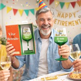 La retraite marque une nouvelle étape de la vie, et quoi de mieux qu’un verre à champagne doré pour célébrer cet événement ? Offrez un cadeau original avec cette flûte à champagne "Vive la Retraite", soigneusement présentée dans un coffret élégant.
