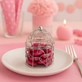 Vous pourrez placer un sac a dragees ou un autre accessoire a l'intérieur du Contenant Diamant Fer Forgé Blanc