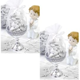 Le Contenant dragees plexi Boule mappemonde Argent est idéal pour le bapteme ou la communion de vos enfants.