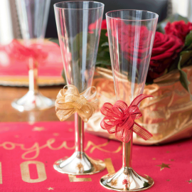 20 Coupes à champagne jetables pied couleur Or Chrome