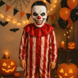 La robe à rayures multicolores rappelle l’univers du cirque et des clowns traditionnels, tout en offrant une coupe féminine et confortable. Le serre-tête assorti complète le look avec une touche décalée, idéale pour incarner un clown espiègle, festif et plein d’énergie. Facile à enfiler, ce déguisement est conçu pour profiter de la fête sans contrainte.