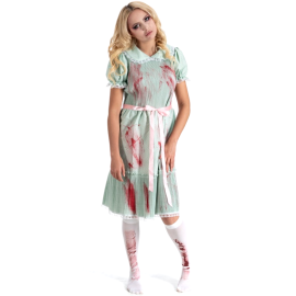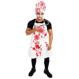 Inclus : Une combinaison à manches longues avec capuche, imprimée de fausses taches de sang.