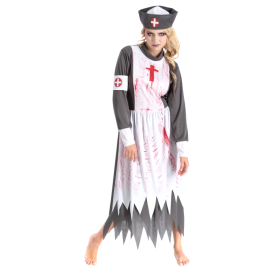 Inclus : Une combinaison à manches longues avec capuche, imprimée de fausses taches de sang.