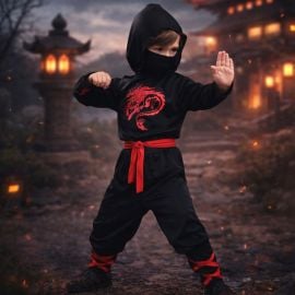 Ce déguisement ninja 5-7 ans est le costume idéal pour tous les petits aventuriers qui rêvent de devenir de véritables maîtres des arts martiaux.