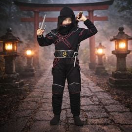 Ce déguisement ninja 5-7 ans pas cher permet à votre enfant de se transformer en guerrier silencieux et agile.