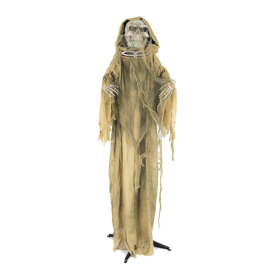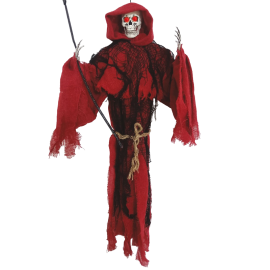 Détails Fins: Tissus de qualité aux teintes grises et noires, avec des chaînes réalistes et une faux stylisée.