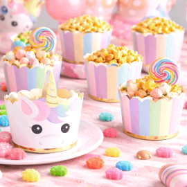 Éléments visuels : licorne colorée, corne dorée, effet cavalier réaliste