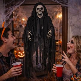 Son tissu à l’aspect usé et organique, mêlant des tons verts et noirs, évoque un être venu des profondeurs, protecteur d’âmes errantes ou messager de l’obscurité. La capuche intégrée accentue le mystère et permet de jouer avec l’ombre et le regard pour un rendu encore plus angoissant. Facile à enfiler, ce déguisement adulte est parfait pour ceux qui veulent un costume Halloween efficace, sans accessoires compliqués.