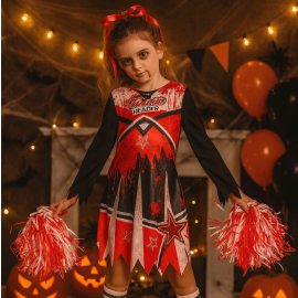 Avec ce déguisement pom-pom girl rouge 10/12 ans pas cher, votre enfant est prête à mener la danse… et à récolter les applaudissements sans même répéter les chorégraphies