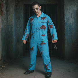 Ce costume de cheerleader version zombie comprend une robe rouge, noire et blanche décorée de fausses éclaboussures et de motifs d’étoiles pour un effet visuel percutant. Les manches longues et l’ourlet dentelé lui donnent un style effrayant et unique.