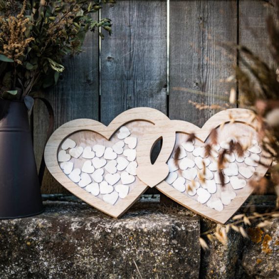 Soyez original et poser le Double cadre coeur livre d'or en bois avec 60 coeurs dès l'entrée de votre reception avec votre candy bar , baby shower par exemple