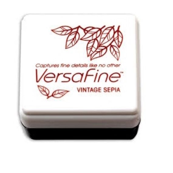 Encre Versafine Vintage Sepia Choisissez l'Encre Versafine Vintage Sepia c'est une encre pigmentée à séchage rapide, elle est idéale pour faire ressortir les détails de tous vos tampons même les plus fins et parfaite pour l'utilisation de l'aquarelle car elle ne bave pas à l'eau.
