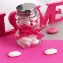 Ce contenant à dragées en verre transparent est livré vide afin que vous puissiez le remplir de dragées ou de petits bonbons.