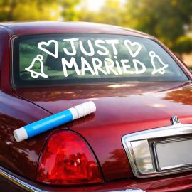 Feutre ardoise effaçable Blanc Ce feutre ardoise couleur Blanc sera indispensable pour l'inscription de vos messages sur vos marque places, porte noms lors de votre cérémonie