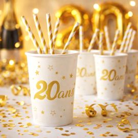 - Design élégant avec inscriptions "20 ans" et "Joyeux Anniversaire"