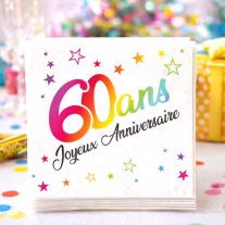 6 gobelets en carton multicolore anniversaire 60 ans 25cl