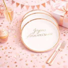 GOBELETS 200ML JOYEUX ANNIVERSAIRE ROSE GOLD X 8
