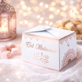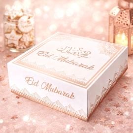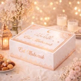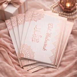 - Motifs : Élégants ornements et calligraphie Eid Mubarak en arabe et en anglais