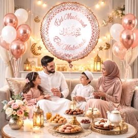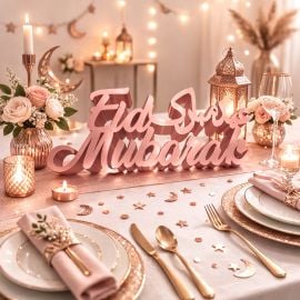 - Couleur : Rose Gold avec motifs décoratifs Eid Mubarak