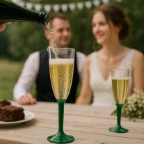 Le verre a eau avec leur pied couleur Vert sapin est à assortir avec le reste de notre vaisselle jetable pas cher :flûtes à champagne, gobelets plastique...