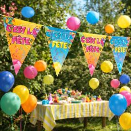 Ajoutez modernité et festivité à vos événements avec cette guirlande cascade "C'est la Fête" en rose fuchsia et argent. Parfaite pour toutes les occasions festives, elle apporte du mouvement et de l'éclat à votre décoration.