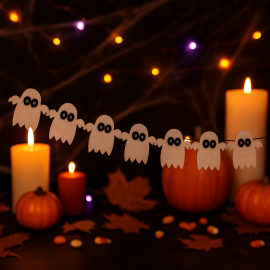 Rien de tel qu’une guirlande de citrouilles pour annoncer une ambiance 100 % Halloween ! Cette guirlande en papier de 6 mètres apporte une touche festive et colorée à vos décorations. Avec ses citrouilles orange et noires au sourire effrayant, elle est idéale pour habiller un mur, une porte, une salle ou même l’entrée de votre maison.