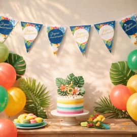 Créez une ambiance tropicale inoubliable avec cette guirlande de fleurs colorées, disponible dès maintenant sur Badaboum.fr !