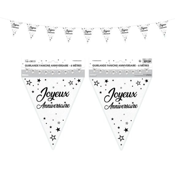 Cette guirlande est composée de 9 fanions MULTICOLORE D'une longueur totale de 6m, elle sera remarquée et appréciée de tous, proches et collègues. Dans un salon en intimité, au bureau ou dans une salle bondée, elle créera une atmosphère joyeuse et chaleureuse lors de cet événement spécial.