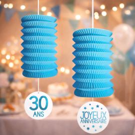 Guirlande déco Spirale Joyeux anniversaire Bleu turquoise x3 pièces