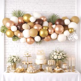 Kit de 50 ballons à gonfler Or & Blanc de différents diamètres. Superbe lot de ballons multicolores pour toutes vos fêtes d'anniversaire ou de Mariage pas cher.