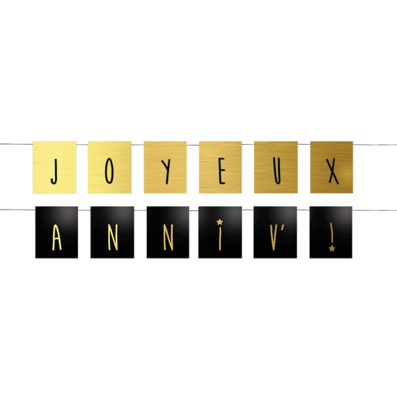 Kit 2 Guirlande Lettres Joyeux Anniv' Noir et Or 1.20m