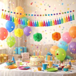 - Contenu : Guirlande Disque 2.5m, guirlande pompons 3m et pompons 30cm