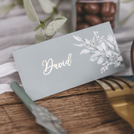 Thème Greenery : Des designs inspirés de la nature avec des nuances sophistiquées de vert de gris et blanc, parfaits pour des thèmes de mariage modernes ou des fêtes élégantes.