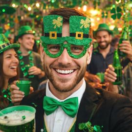 Ajoutez une touche d’originalité et de fête à votre look avec ces lunettes trèfles Saint-Patrick, un accessoire parfait pour célébrer cette journée irlandaise emblématique, disponible sur Badaboum.fr à un prix attractif. Avec leur design pailleté en forme de trèfles verts, ces lunettes incarnent l’esprit de la Saint-Patrick et sont idéales pour les soirées costumées, parades et fêtes à thème. Confortables et légères, elles permettent de profiter de la fête tout en affichant un style festif unique.