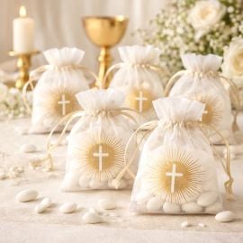 Marque place Communion ruban x 6 En plein préparatif pour une communion ? Cette ravissante collection épi dont appartient ces marques place fera une décoration de table parfaite pour célébrer la communion d'un enfant.ces marques place blancs se prêteront à merveille avec cette cérémonie de foi. De 5 cm de diamètre, la couleur métallisée dorée de ces 6 marques place en carton apportera de l’élégance sans dénaturer le côté solennel de la communion. Après avoir indiquer le prénom du convive au dos de la pastille, accrochez ce porte-nom à un verre à pied, à un rond de serviettes ou bien à un contenant à dragées grâce au ruban en satin de couleur menthe de 16 cm de longueur