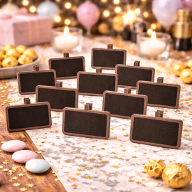Le marque place mini ardoise couleur Prune est proposé en lot de 12 à prix discount pour votre cérémonie, il se pincera facilement sur vos nombreux accessoires de table graçe à sa mini pince incluse