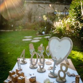 Marque table mariage en bois forme coeur