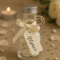 Exclusivement disponible sur Badaboum.fr, la mignonnette en verre Mathis vous permettra de créer des souvenirs mémorables pour vos invités.