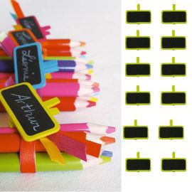 12 petites ardoises montées sur pince à linge en bois pour écrire le nom de vos invités