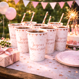 Mini drapeau marque place Rose gold : Choisissez ces mini drapeaux avec bord métallisé Rose gold comme marque place lors de votre deco de table mariage, personnalisez les en écrivant les noms de vos hôtes et en les piquant sur vos nombreux supports