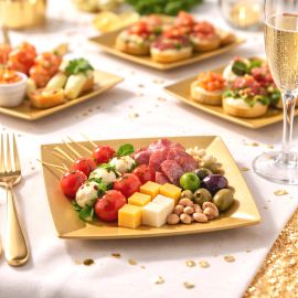 Associez votre nappe voie seche Or avec notre vaisselle jetable pas cher, Idéal pour vos cérémonies !
