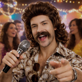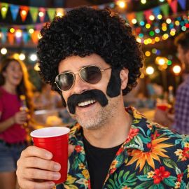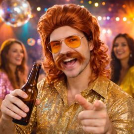 Cette perruque mi-longue avec moustache grise est parfaite pour créer un personnage rétro, sage en apparence mais totalement fun en réalité. Son style complet, son fort impact visuel et son prix pas cher en font un accessoire incontournable pour réussir vos déguisements sans vous compliquer la vie.