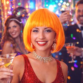 Retrouvons le goût de la fête ! Choisissez la Perruque Disco pas cher Métallique de couleur Or pour vos nombreux déguisements Anniversaire, Carnaval.