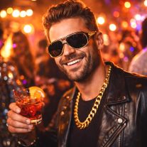 Associez cet ensemble avec une veste en cuir, un jean déchiré et des lunettes de soleil pour un look rockeur complet. Parfait pour incarner une star légendaire ou pour un événement à thème musical.
