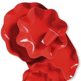 Choisissez ces Petites Assiettes en carton design Vague Rouge 21cm , des assiettes en carton originales avec une forme evasée qui vous séduira a coup sur