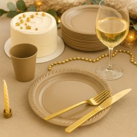 Les assiettes en carton Taupe sont à accorder avec notre vaisselle jetable pas cher :Set de table, Couverts , Nappes, Chemin de table...