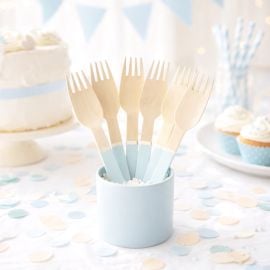 Les Petites Fourchettes en Bois Bleu Marine x 8 pièces pas chères, coup de coeur sur cette vaisselle jetable en bois