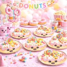 La piñata en forme de donuts dispose de ficelles que les enfants peuvent tirer pour libérer les surprises et friandises à l’intérieur. Avec son design fun et ses couleurs attrayantes, elle est idéale pour amuser les petits et les grands tout en ajoutant une touche décorative à votre fête.