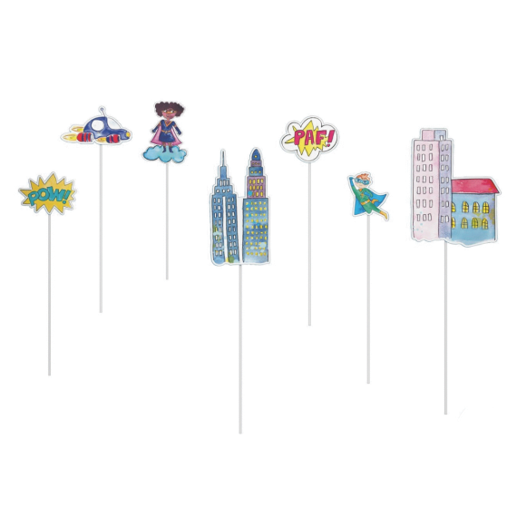 Pique à Gâteau Bois et Carton Super-Héros x7pcs