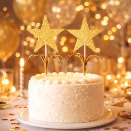 lot de 12 pique à gâteau en bois étoile pailleté argent 7.5cm - pas cher